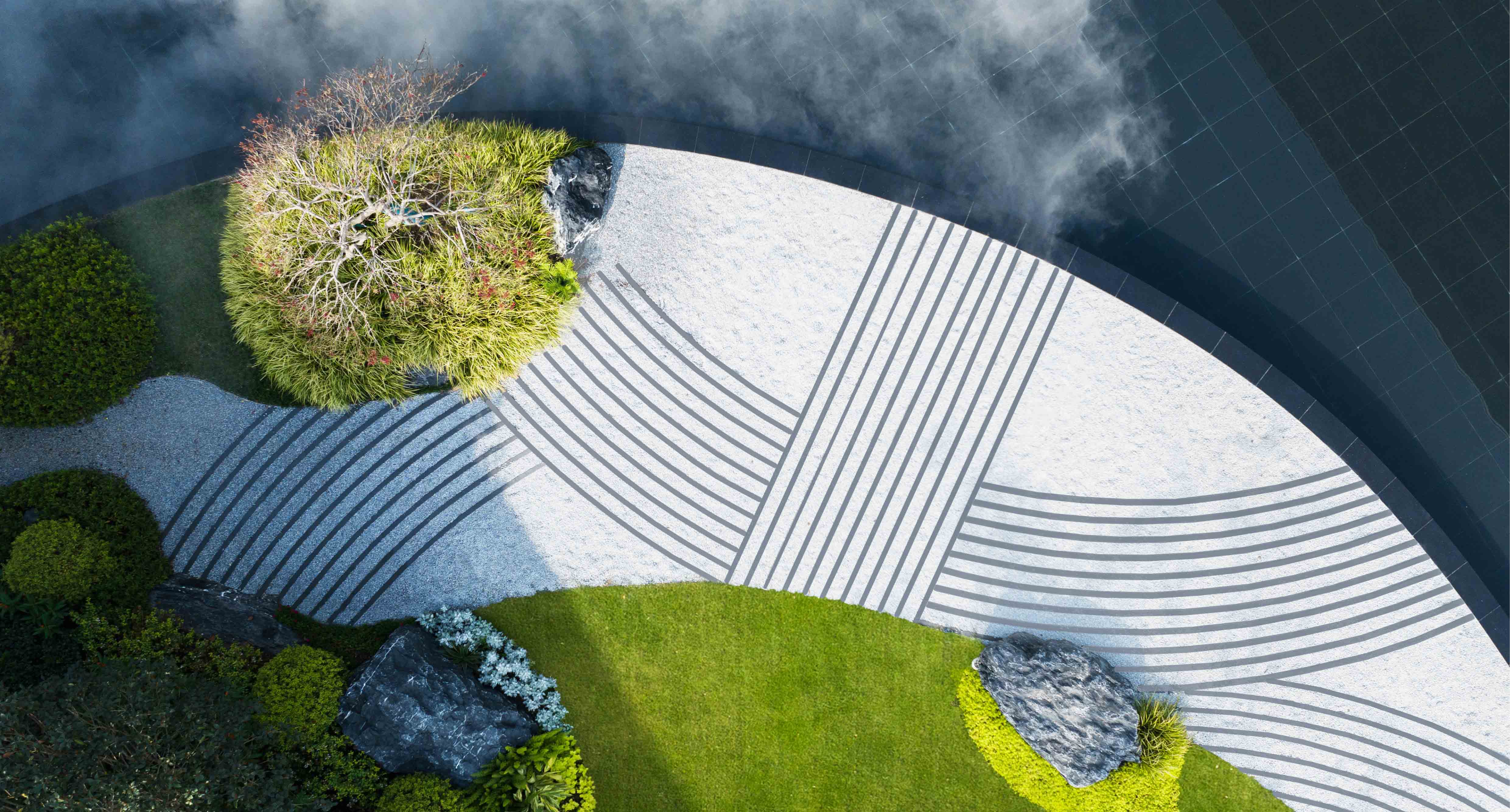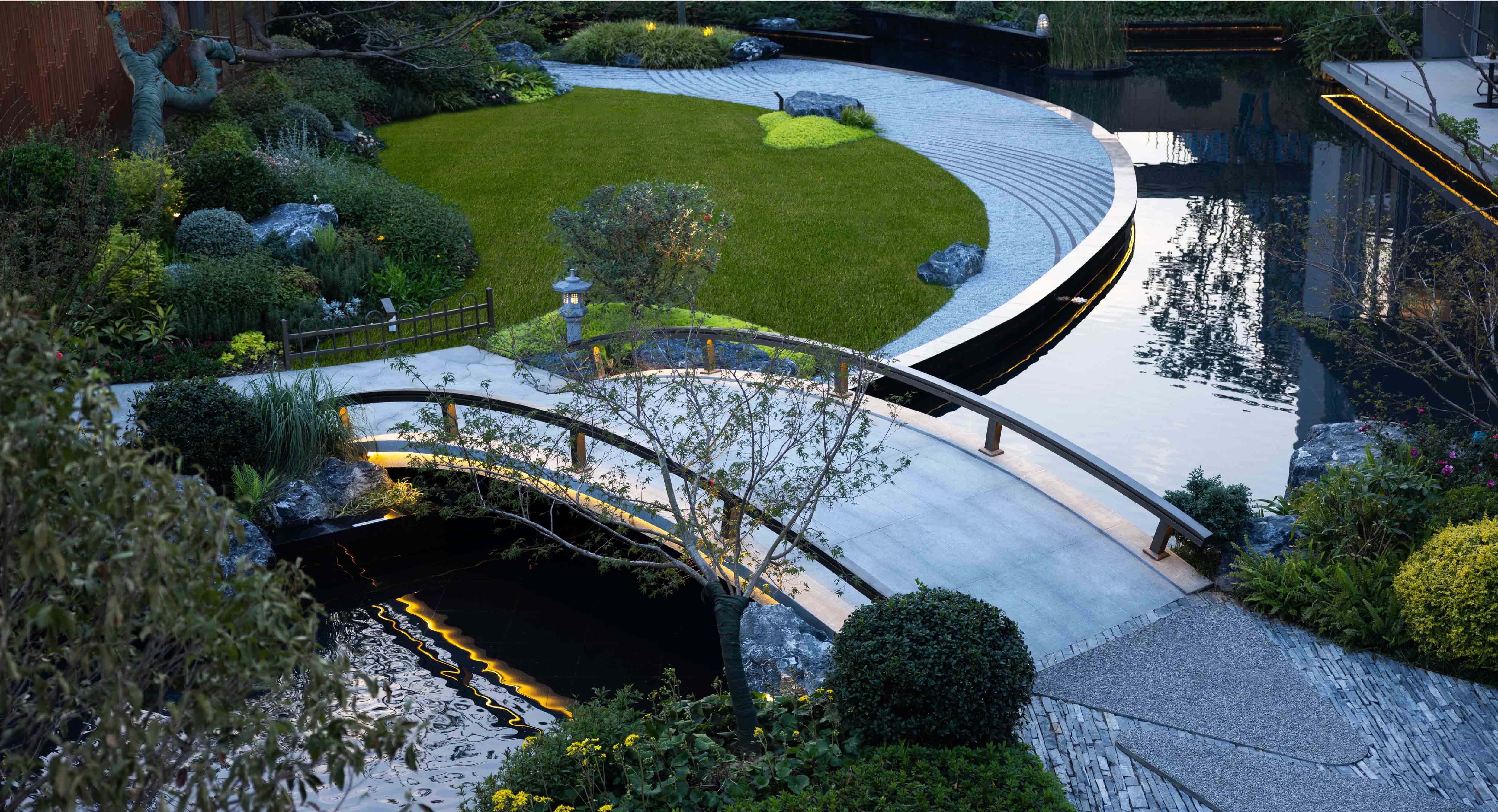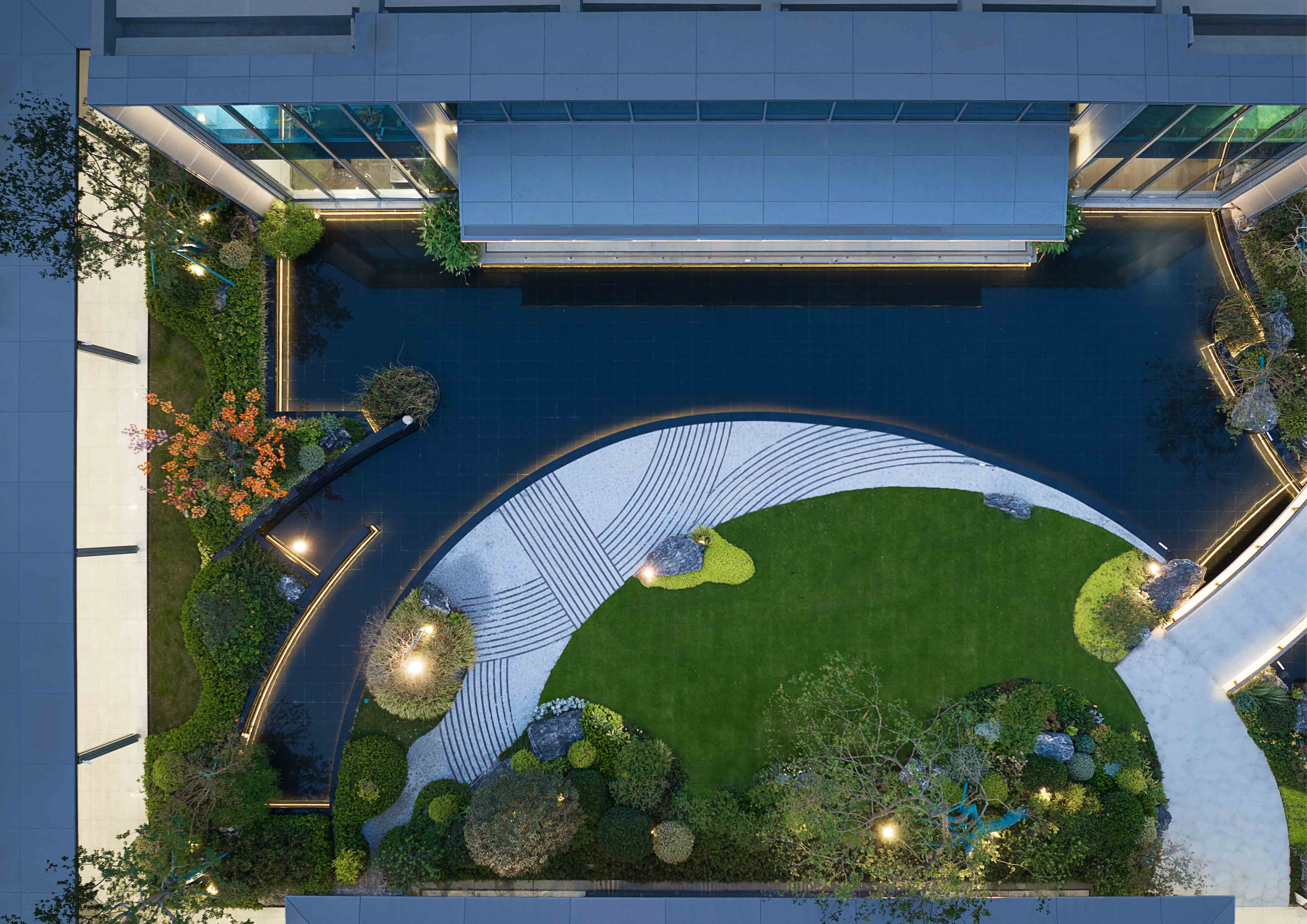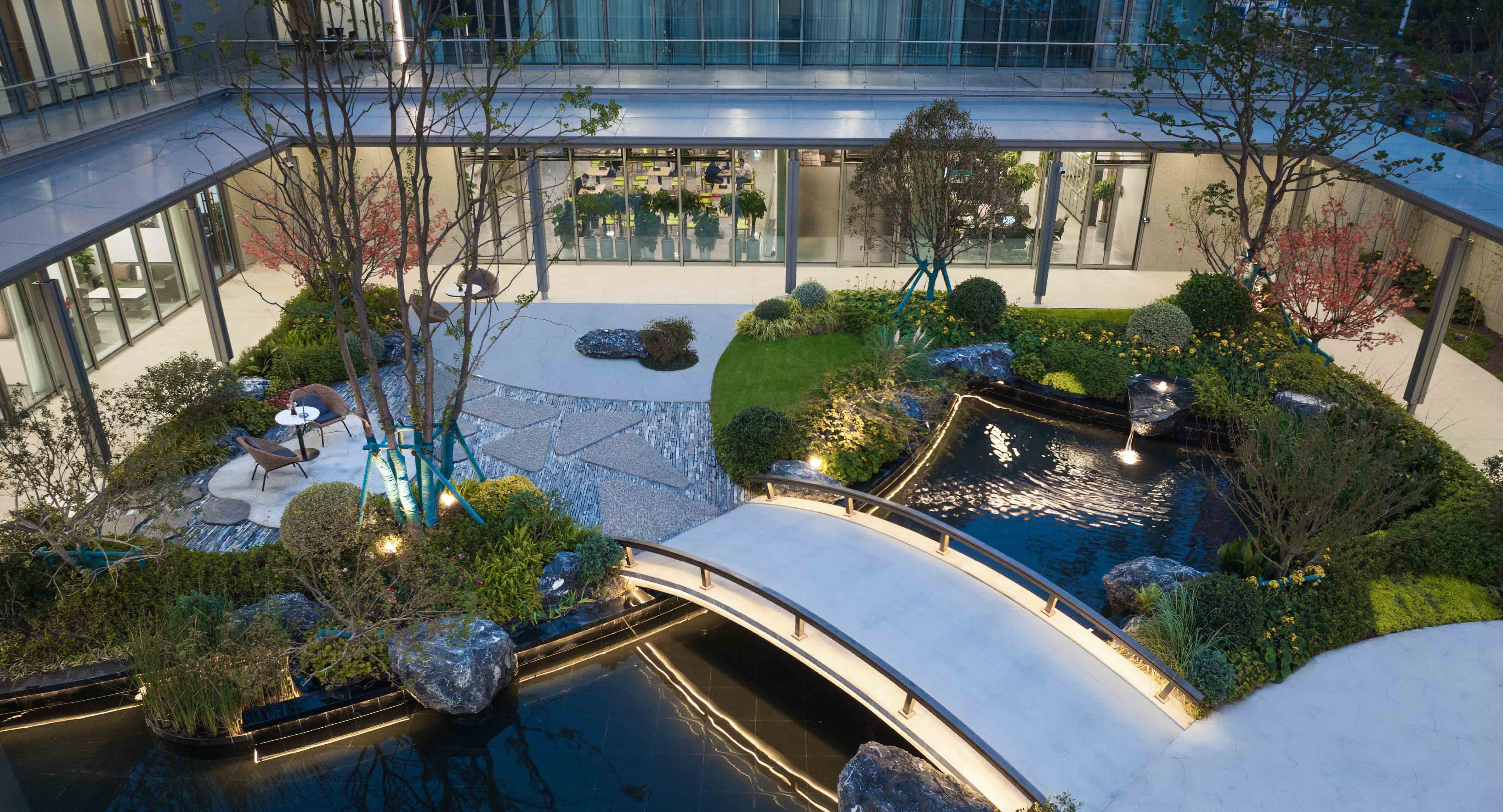 借山水意境,精耕细作,以空间的互动,拉近人们与自然的距离,融合自然环境于居住环境,旨在创造多元体验、诗意栖居的示范区景观,营造隐奢品质生活。
